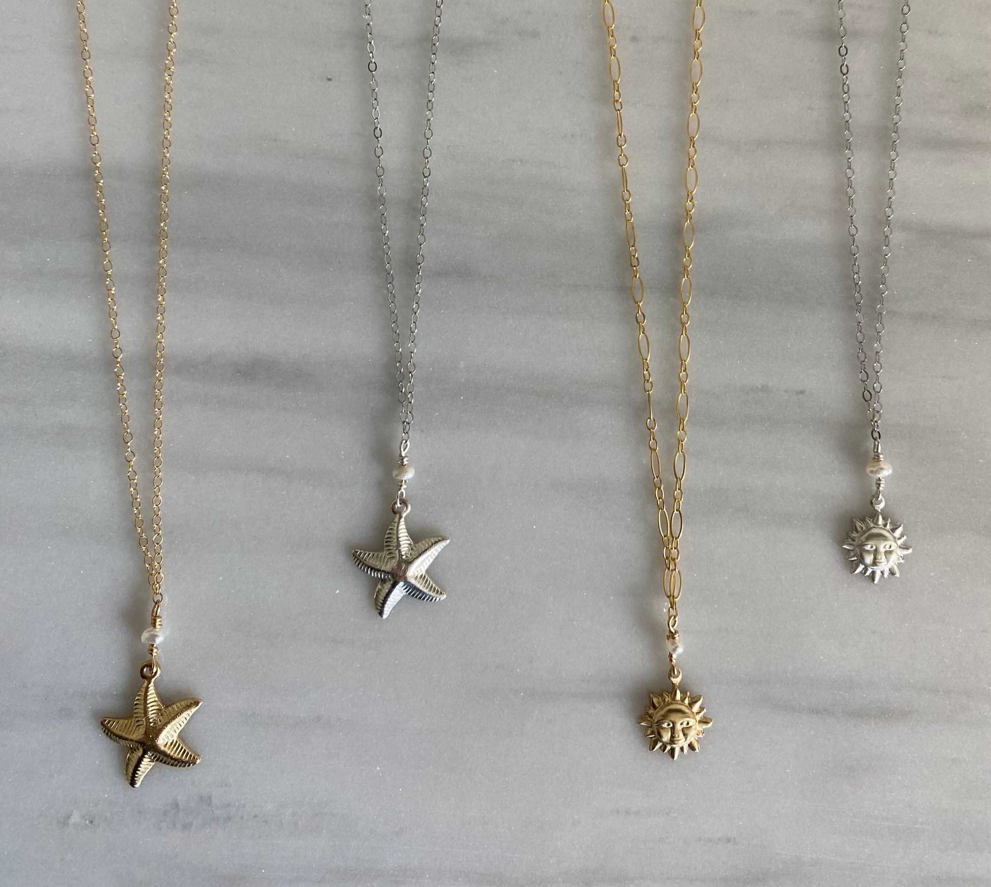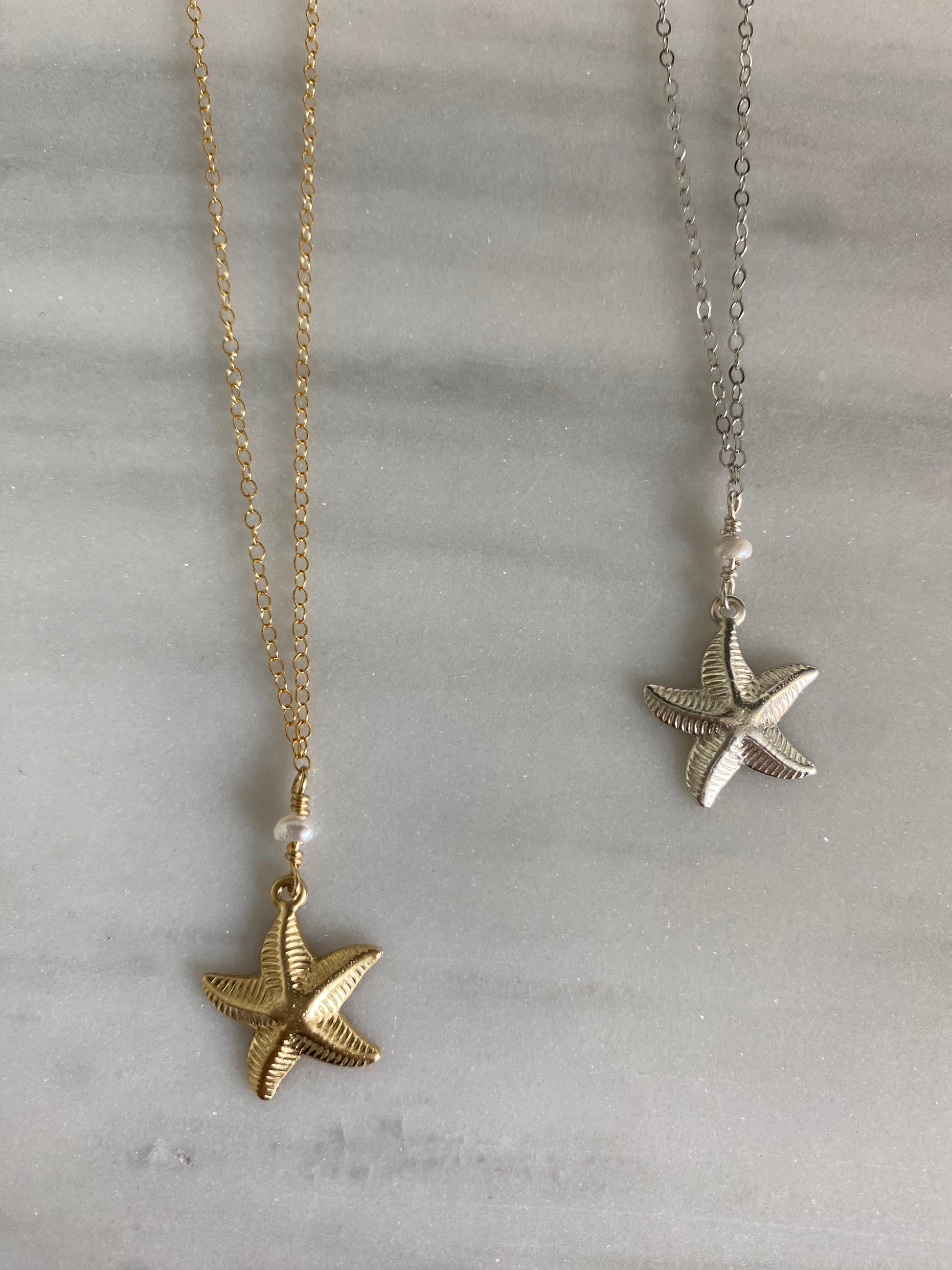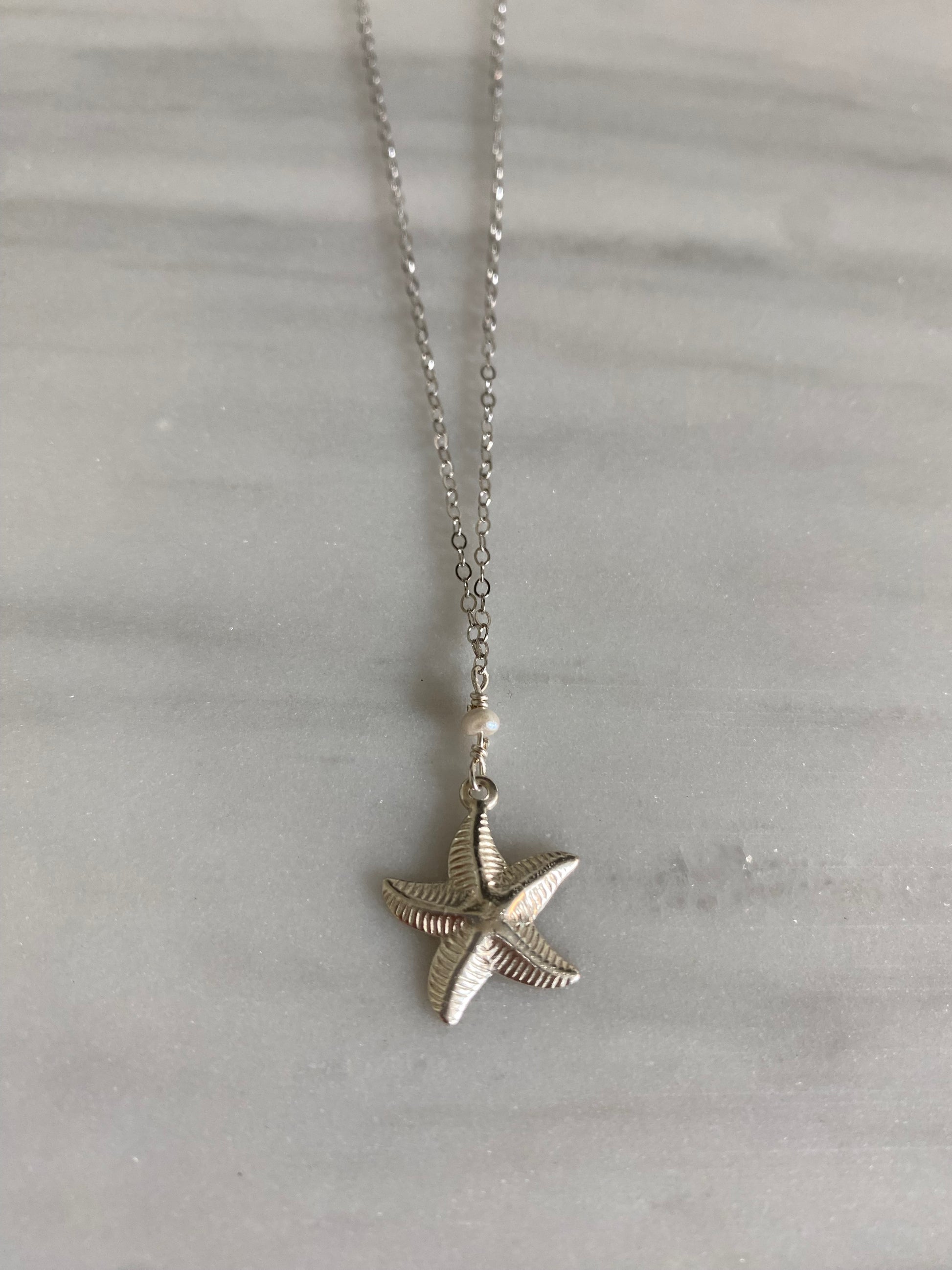 A little seaside magic, coming right up. This necklace pairs a delicate starfish charm with a glowing freshwater pearl for an easy, beach-day-meets-everyday kind of feel. The starfish brings playful ocean energy, while the pearl adds a touch of classic softness—perfectly balanced and endlessly wearable.