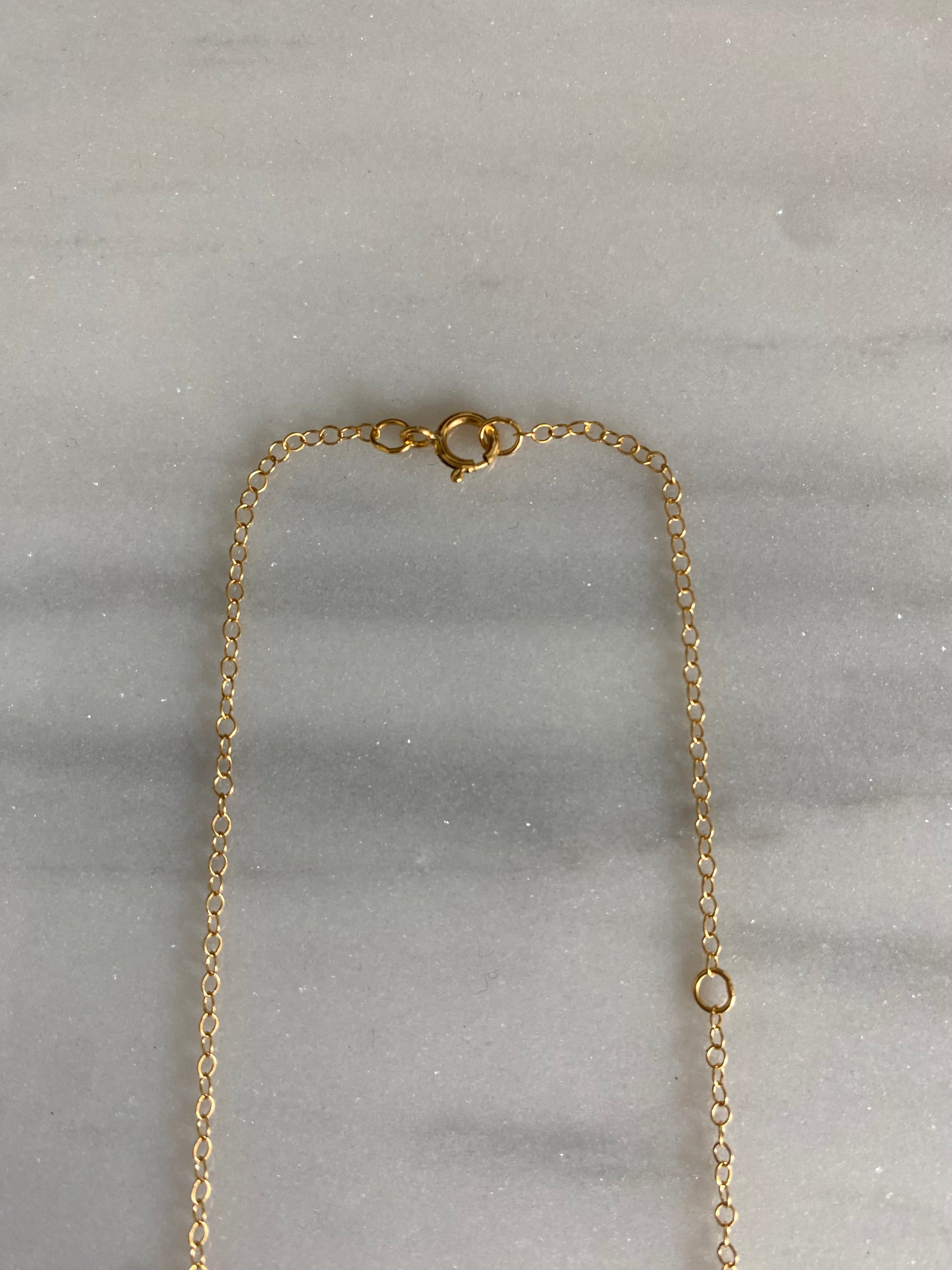 Specifications: 16 inch chain with 1.3mm chain links and spring ring clasp. 14k gold-filled variation has option for 14 inches closure